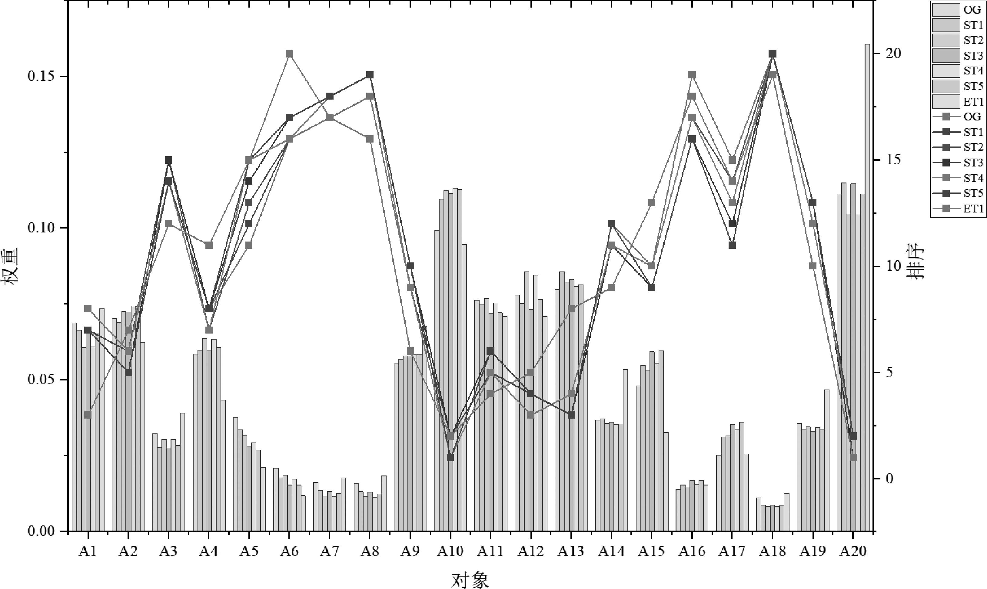 | 对象编号 | 评价对象权重排序 | ||||||